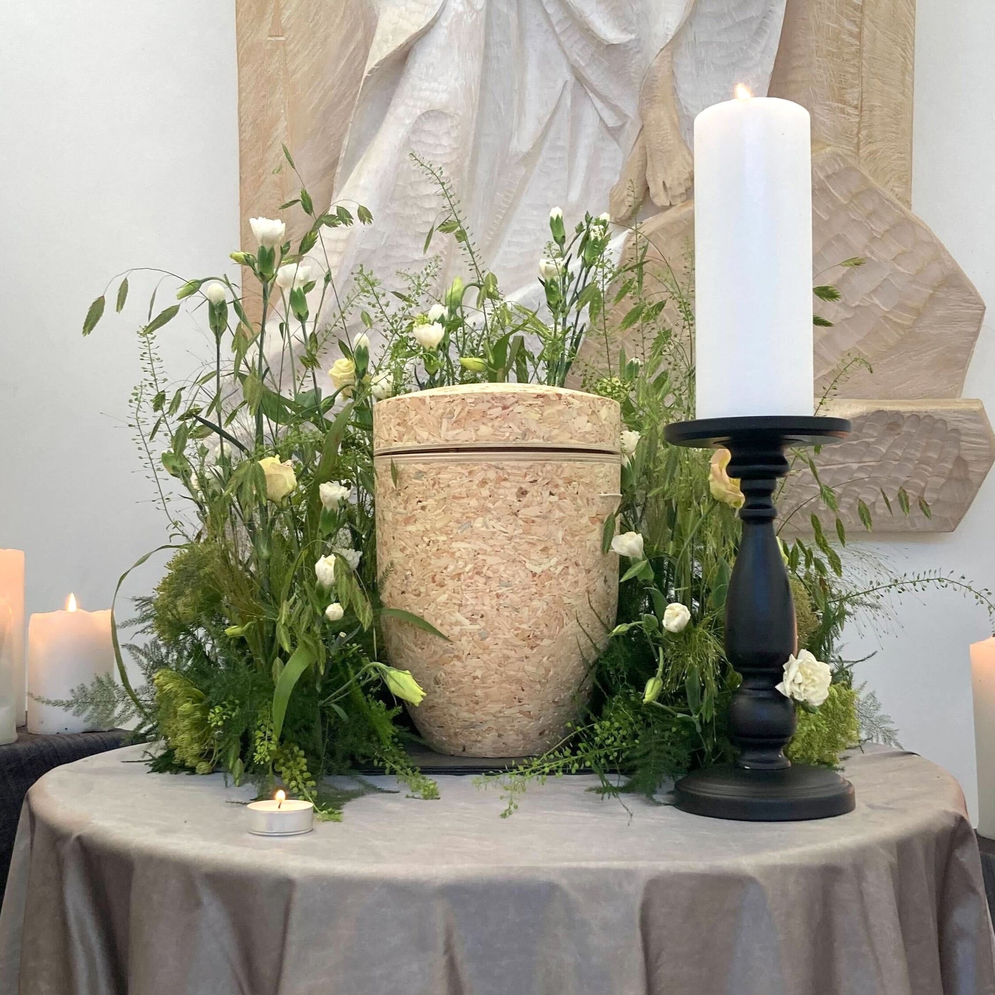- Urnenschmuck aus gemischten, wiesenhaften Blumen